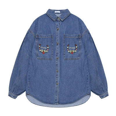 Tstz xuân mới phiên bản Hàn Quốc của áo khoác denim đơn giản sang trọng nữ lỏng lẻo thêu áo len thủy triều