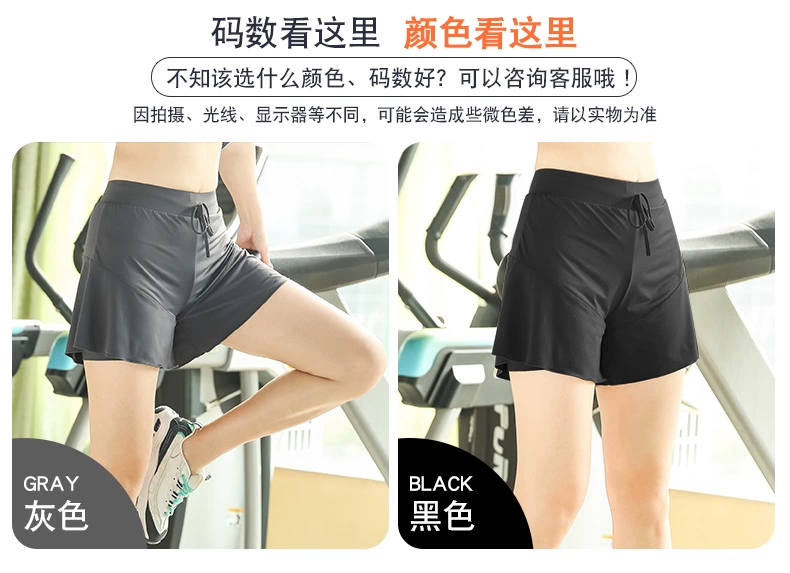 Kích thước lớn quần áo yoga Đáy nữ chất béo mm lỏng chạy thể dục nữ béo chị thể thao quần short mỏng giả hai