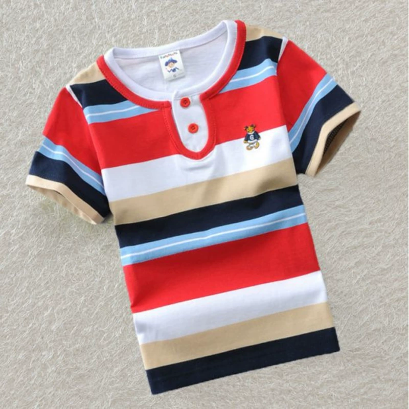 18 quần áo trẻ em mới cho bé trai cotton tay ngắn phần mỏng Áo thun trẻ em lớn mùa hè váy sọc áo nửa áo