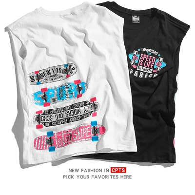 Tide thương hiệu ván trượt hip hop lỏng vest thanh niên cao gió thể thao cotton vest vai mùa hè đôi nhảy đường phố mồ hôi