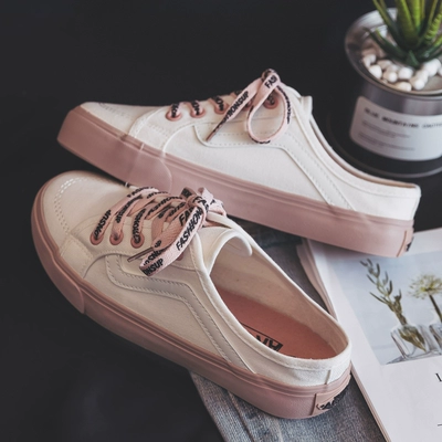 Mùa hè 2018 giày vải mới nữ giày trắng Harajuku ulzzang Sinh viên Hàn Quốc hoang dã không có nửa gót kéo