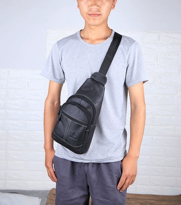Thời trang mới kinh doanh da túi ngực nam túi đeo vai túi da ba lô nam túi thể thao ngoài trời