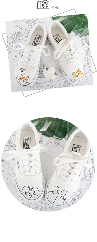 Giày nữ mùa hè 2018 hoang dã Giày trắng vẽ tay giày vải nữ sinh viên Hàn Quốc đế bằng giày gió đại học