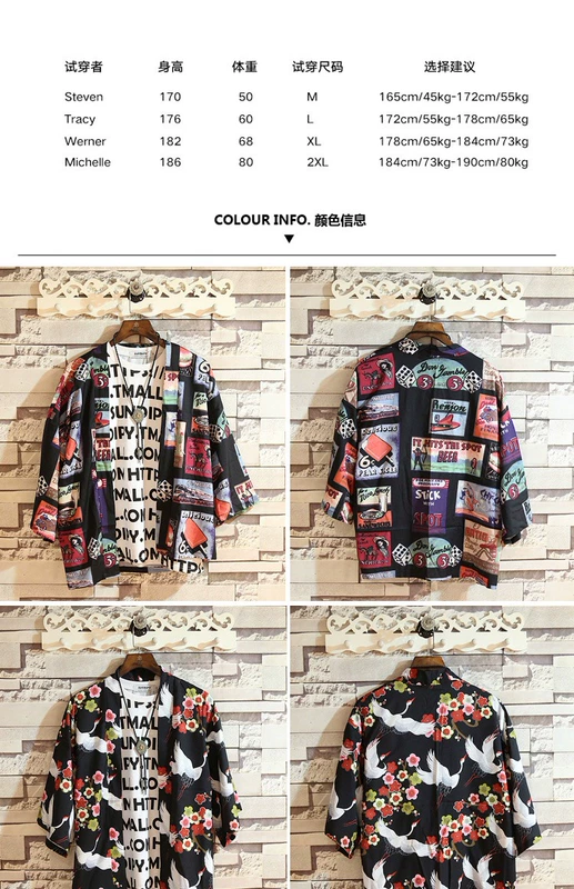 Áo khoác Nhật Bản bảy điểm tay áo kimono năm điểm tay áo sơ mi nam cardigan mẫu đôi lỏng lẻo phần tay áo sơ mi áo choàng