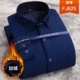 Ông bố trung niên mùa đông mặc áo ấm cộng với áo nhung dài tay kẻ sọc dày có phân