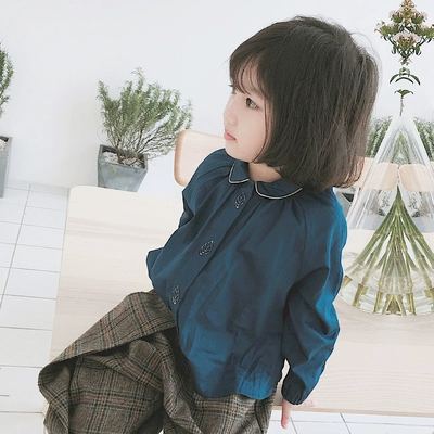 Áo sơ mi nữ trẻ em Sun 2018 thu đông 2018 trẻ em mới Hàn Quốc áo cotton thêu tay dài