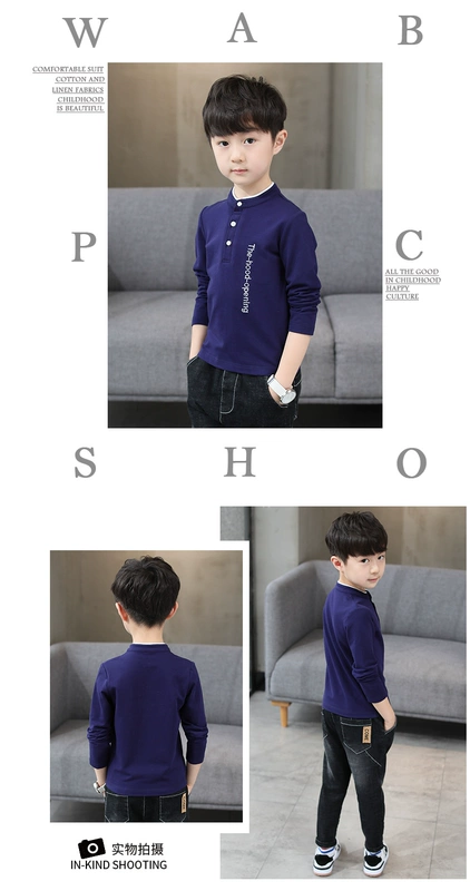 Áo thun bé trai mùa thu tay dài 2018 mới cho trẻ em ve áo từ bi Paul lớn trẻ em giản dị áo sơ mi POLO phiên bản Hàn Quốc
