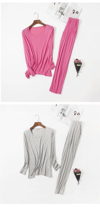 Modal dịch vụ tại nhà phiên bản lỏng lẻo nữ dài tay phù hợp với đồ ngủ siêu rộng kích thước mặc để tăng béo cho mẹ mùa thu