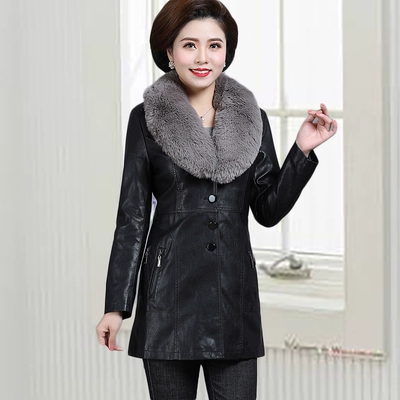 Áo khoác phao nữ mùa xuân trung thu 2018 cho mẹ bằng da PU áo khoác trẻ trung áo gió Áo sơ mi nữ cổ vuông vuông nữ