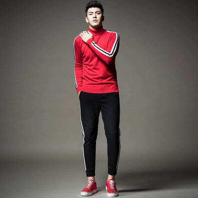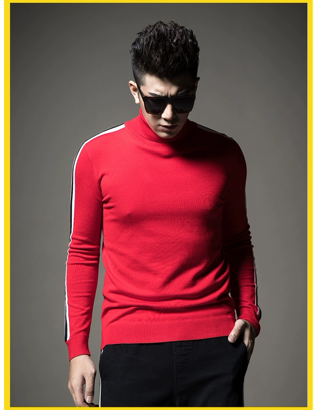 SXF Saint Xi Quạt cao cổ áo len nam Thu mới Áo len mỏng áo len sọc nam đan đáy áo thủy triều