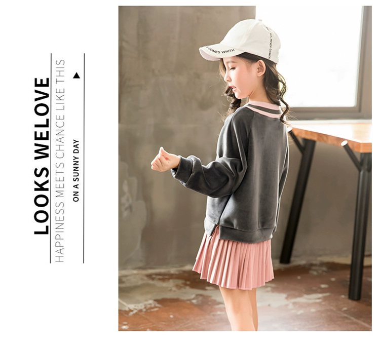 Váy bé gái 2018 phiên bản Hàn Quốc mới mùa thu và mùa đông nhung vàng dài tay bé gái công chúa nước ngoài váy mùa thu trẻ em