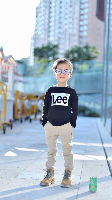 Áo sơ mi cotton cổ tròn trẻ em đẹp trai của Nhật Bản nam và nữ bé lớn in chữ T-shirt 100-140