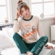Có thể mặc mùa xuân và mùa thu phiên bản Hàn Quốc của đồ ngủ nữ cotton dài tay hai mảnh mỏng dễ thương phục vụ sinh viên tươi tắn