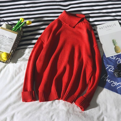 Áo len cao cổ thu đông nam phiên bản Hàn Quốc của cặp đôi phóng khoáng với áo len màu rắn kiểu áo khoác xu hướng sinh viên Hồng Kông sang trọng