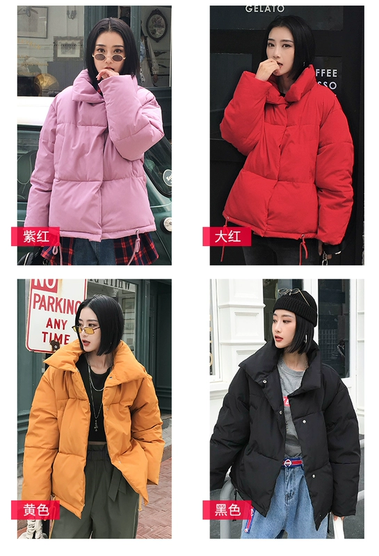 2018 áo khoác mới sang trọng màu đỏ xuống bông pad phụ nữ mùa đông oversize Dongdaemun dịch vụ bánh mì ngắn in