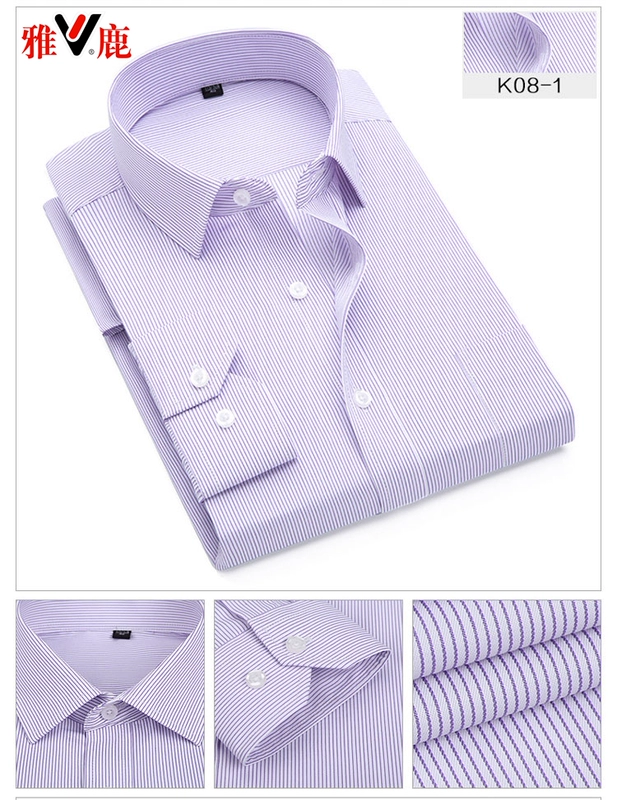 Yalu áo dài tay nam mùa thu mới kinh doanh miễn phí sắt mỏng sọc chuyên dụng dụng cụ phù hợp với áo sơ mi trắng nam