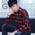Mùa thu 2018 mới siêu siêu lưới kẻ sọc đỏ nam kẻ sọc nam Hàn Quốc xu hướng áo dài
