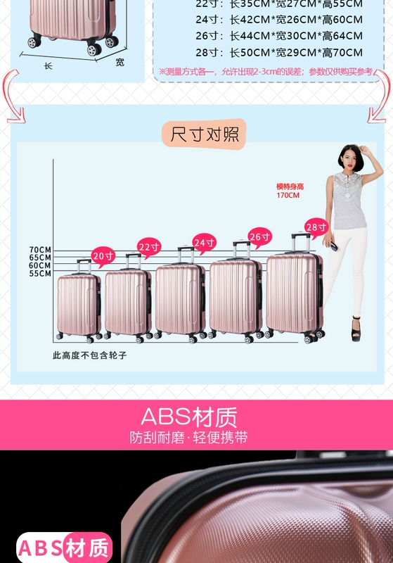 Sinh viên Hàn Quốc 20 inch hành lý phổ biến bánh xe đẩy trường hợp hành lý du lịch nam 24 inch mật khẩu hộp vali nữ 26