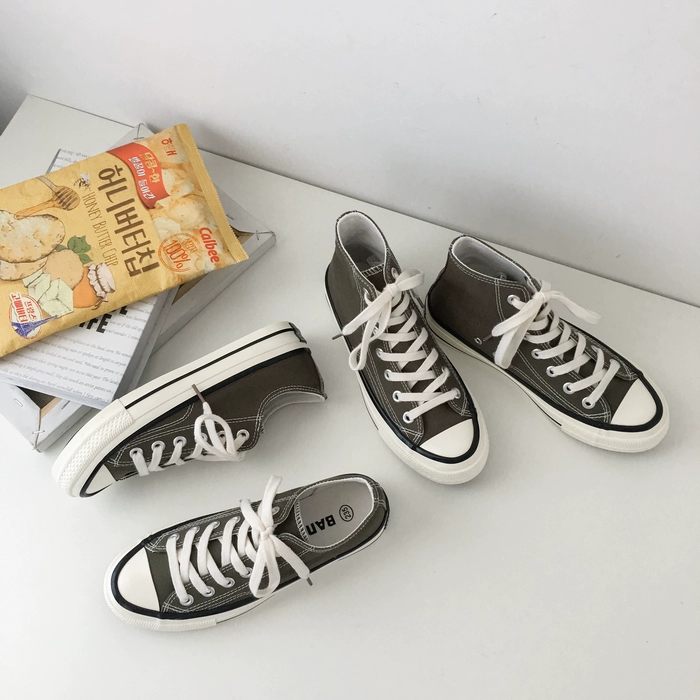 Fat Duckling High 1970s giày vải màu xanh ô liu nữ sinh viên phiên bản Hàn Quốc Giày đế bệt ulzzang sang trọng