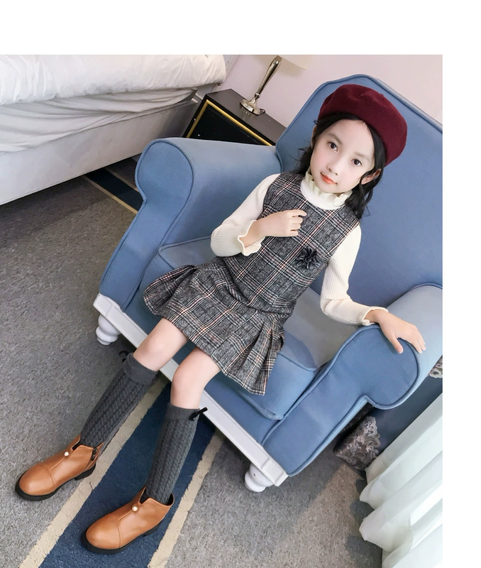 Váy vest bé gái 2018 mới bé gái quần áo trẻ em kẻ sọc váy trẻ em nước ngoài váy mùa thu và váy len mùa đông