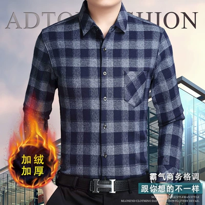 Mùa thu và mùa đông áo sơ mi nam trung niên ấm áp cộng với áo sơ mi cotton cotton dày
