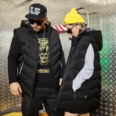 Xu hướng phiên bản lớn thời trang nam vest cotton giản dị có mũ trùm đầu có thể tháo rời vest béo 佬 áo khoác cotton lớn