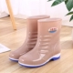 Giày nước nữ đi mưa ống ngắn nhà bếp ủng mùa đông mặc phim hoạt hình bảo hiểm lao động người lớn nhà kinh doanh cộng với ủng mưa nhung