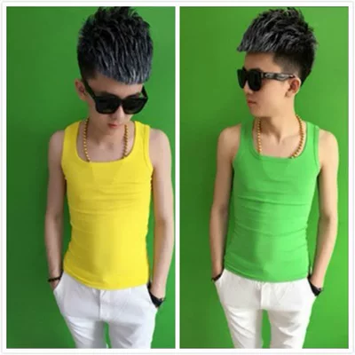 Xã hội kẻ từ cổ áo vest màu rắn phiên bản Hàn Quốc bó sát mồ hôi vest thanh niên cổ thấp cotton nam vest nhỏ