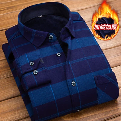 Mùa thu đông cộng với nhung dày ấm 45 áo 50 áo 55 nam dài tay 60 tuổi áo sơ mi trung niên xu hướng lưới