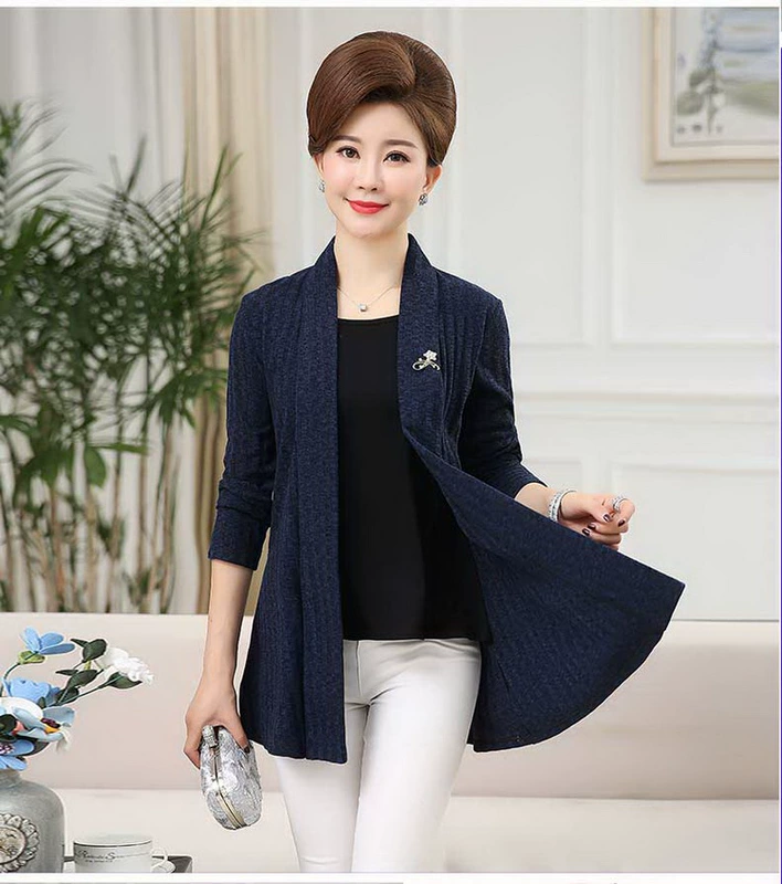 Áo bà mẹ mùa thu giả áo len hai dây áo len nữ trung niên mùa xuân và áo mùa thu áo sơ mi dài tay mỏng