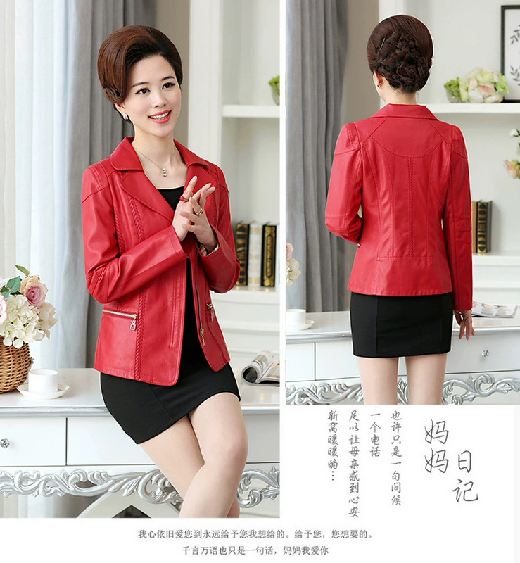 Áo khoác da nữ trung niên áo khoác ngắn mùa xuân và mùa thu 30-40-50 tuổi Mẹ trung niên phụ nữ tải mùa thu