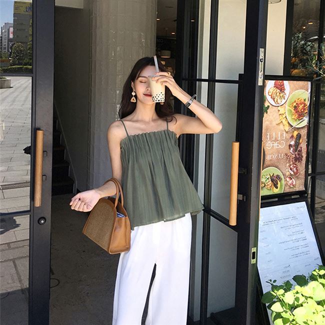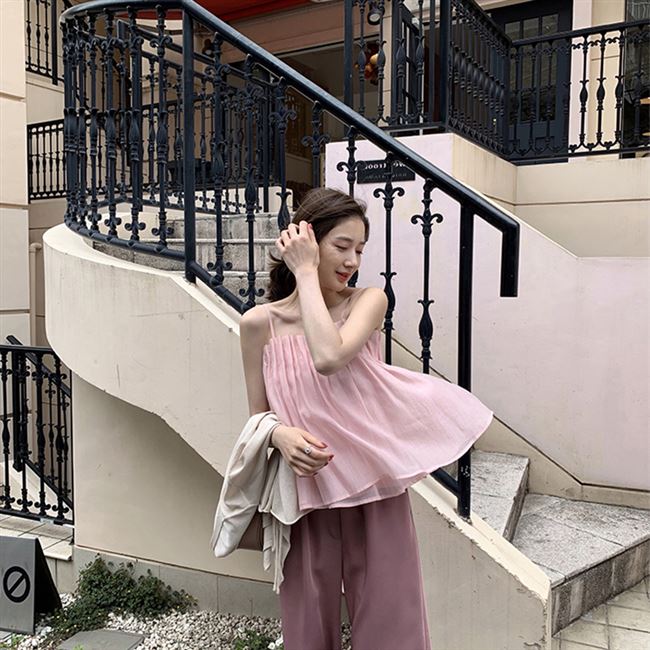 Áo khoác nữ mùa hè phiên bản Hàn Quốc của áo vest yếm voan nữ mặc 2019 tay mới xếp nếp bên trong áo sơ mi nữ rộng rãi - Áo ba lỗ