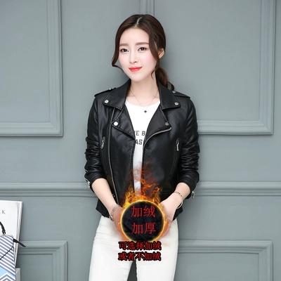 Áo khoác nữ nữ size lớn bằng da ve áo dài tay Slim cộng với áo khoác nhung dày Khóa kéo da Hàn Quốc áo khoác nữ