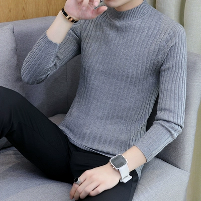 Áo len cao cổ thu đông mùa thu nam phiên bản Hàn Quốc của áo len chạm đáy màu đen Slim xu hướng quần áo dài tay trẻ trung