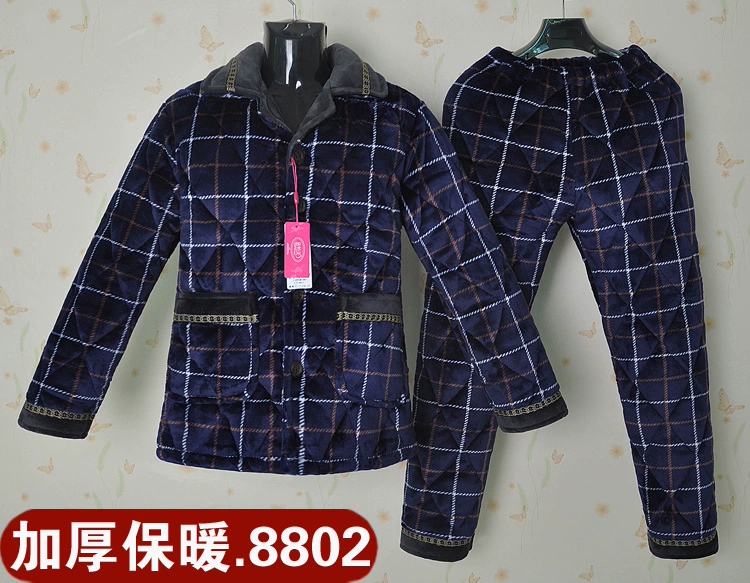 Áo ngủ ba lớp có đệm bông Bộ đồ lót nam trung niên cotton ấm áp Flannel để tăng sự phù hợp với dịch vụ gia đình