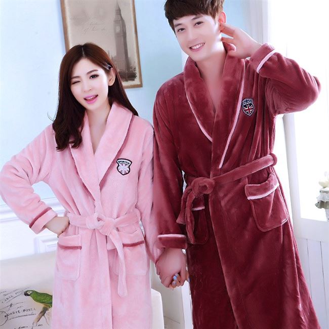 Áo ngủ mùa đông dày lên dễ thương dài san hô nam áo ngủ nữ rùa - Night Robe