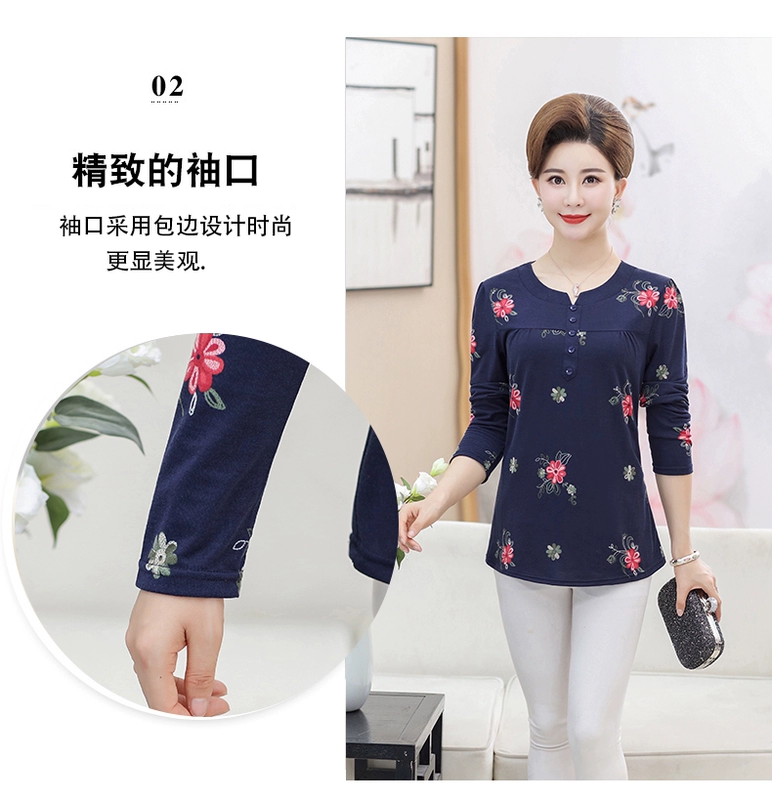 Áo sơ mi mẹ mùa thu áo phông 40-50 tuổi 2018 mới trung niên nữ mùa xuân và áo dài tay mùa thu