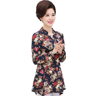 Áo sơ mi nữ dài tay năm mươi tuổi Phụ nữ trung niên mùa xuân và áo sơ mi mùa thu của phụ nữ trung niên quần áo mùa thu mới