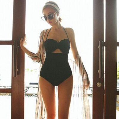 Áo tắm Hàn Quốc nữ cảm giác mới liền bảo thủ che bụng thon gọn ngực nhỏ gợi cảm tụ tập tắm nước nóng mùa xuân nữ - Bộ đồ bơi One Piece