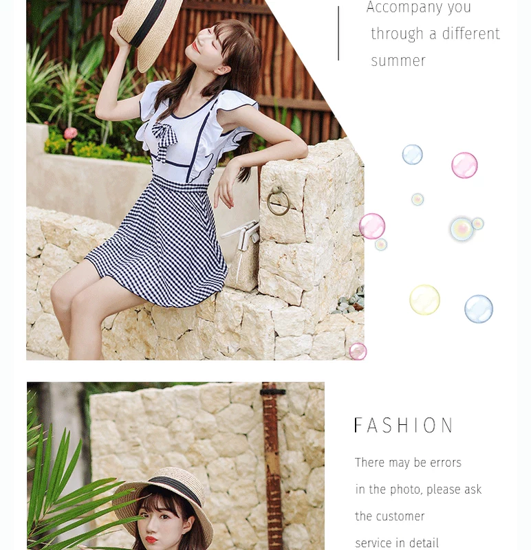 Áo tắm nữ bảo thủ dính liền với nữ sinh viên đồ bơi ngực nhỏ sọc che bụng thon váy kiểu dáng áo tắm spa - Bộ đồ bơi One Piece