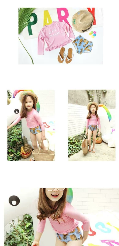 Áo tắm trẻ em Hàn Quốc chia đôi quần eo cao nữ bé che bụng áo tắm dài tay chống nắng chữ nữ đồ bơi