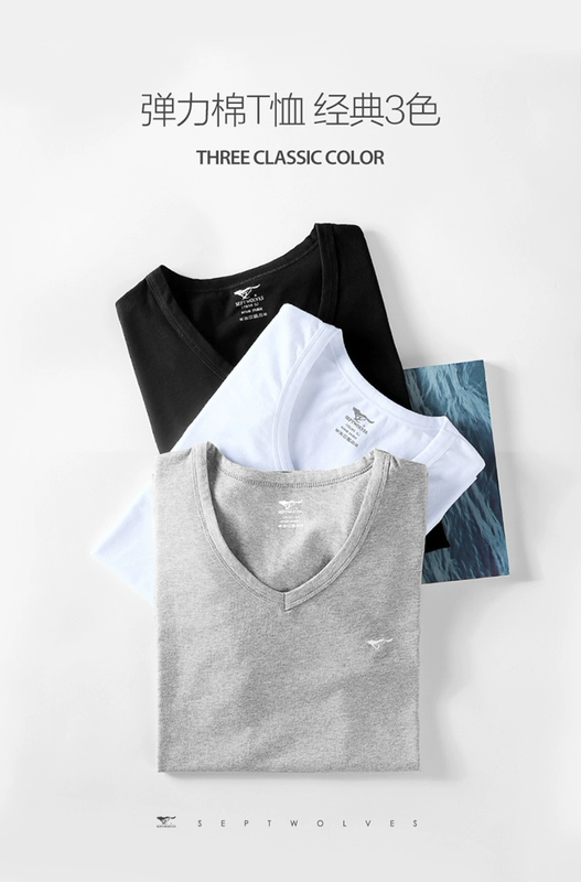 Áo thun cotton bảy màu ngắn tay nam cotton nửa tay bó sát v-cổ áo vest thể thao đáy áo sơ mi cũ mùa hè - Áo vest