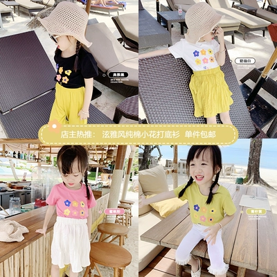 Áo thun cotton ngắn tay cho bé gái Amybaby bé gái 泫 雅 gió mùa hè nhà giải trí thoáng khí quần áo trắng trẻ em - Áo thun