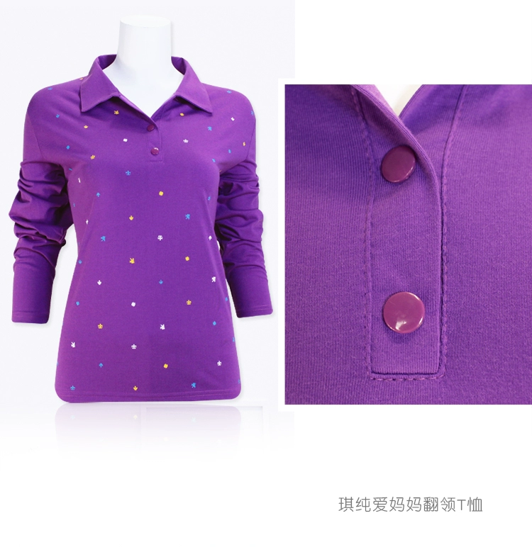Áo thun mẹ mùa thu nữ size rộng rộng 50 tuổi của phụ nữ trung niên cotton dài tay áo ve áo mới chạm đáy