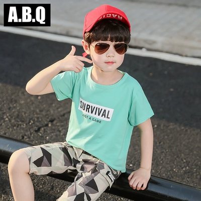 Áo thun trẻ em Abq bé trai Áo thun ngắn tay 2019 hè mới trẻ em lớn trẻ em nước ngoài cotton cotton đẹp trai - Áo thun