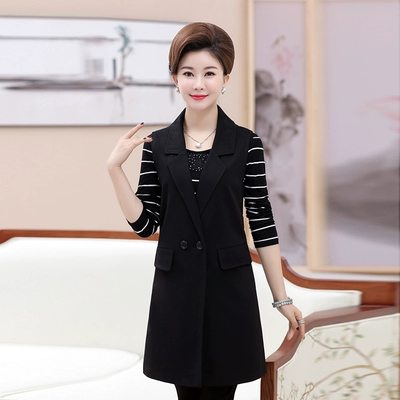 Áo vest nữ mùa xuân và mùa thu 2018 mới cho phụ nữ trung niên 40-50-60 tuổi áo vest dài