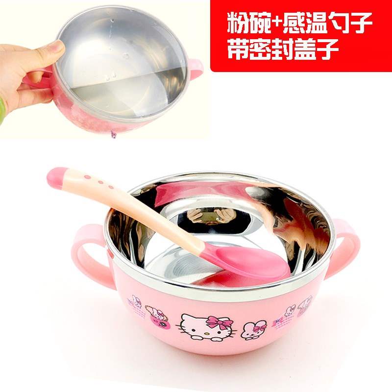 Bát thức ăn bổ sung bát inox dễ thương cho bé cung cấp 0-1 tuổi cho bé bát cách nhiệt chống vỡ hộ gia đình một tổ hợp - Cup / Table ware / mài / Phụ kiện