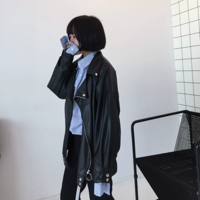 [Beckham] Chú BF gió quá khổ vòng dây kéo pu da xe máy áo khoác da đôi nam nữ