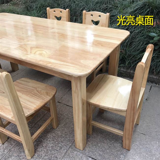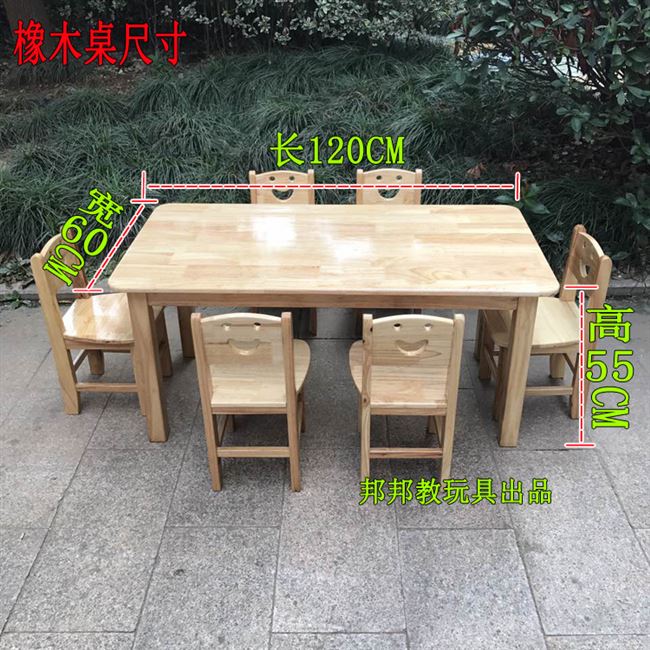 Bộ bàn ghế trẻ em hoàn chỉnh, bàn ghế mẫu giáo, gỗ nguyên khối, gỗ sồi đầy đủ, hình chữ nhật, sáu bộ cửa hàng nhà máy - Phòng trẻ em / Bàn ghế