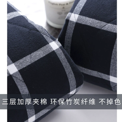 Bộ đồ ngủ bằng vải bông tiêu chuẩn của Mỹ cho nam mùa thu và mùa đông dày ba lớp cotton ấm áp kẻ sọc phục vụ nhà